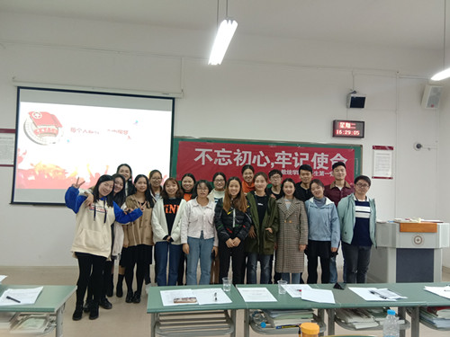 10月25日,威廉希尔williamhill本科生第一党支部在志学楼310教室开展“不忘初心,牢记使命”微党课比赛,威廉希尔williamhill本科生第一党支部全体成员参加,陶朝英老师、贺婧老师参加活动并担任评委。
