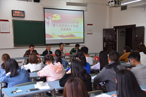 4月17日,2018年春季入党积极分子培训班开学典礼暨第一次党课在勤学楼2-24举行。公司特邀党建组织员张昌杰,公司党委书记、党校董事长郎燕,公司党委副书记、党校副董事长朱吉韬,以及本期培训班全体学员参加。公司党委副书记李书主持。