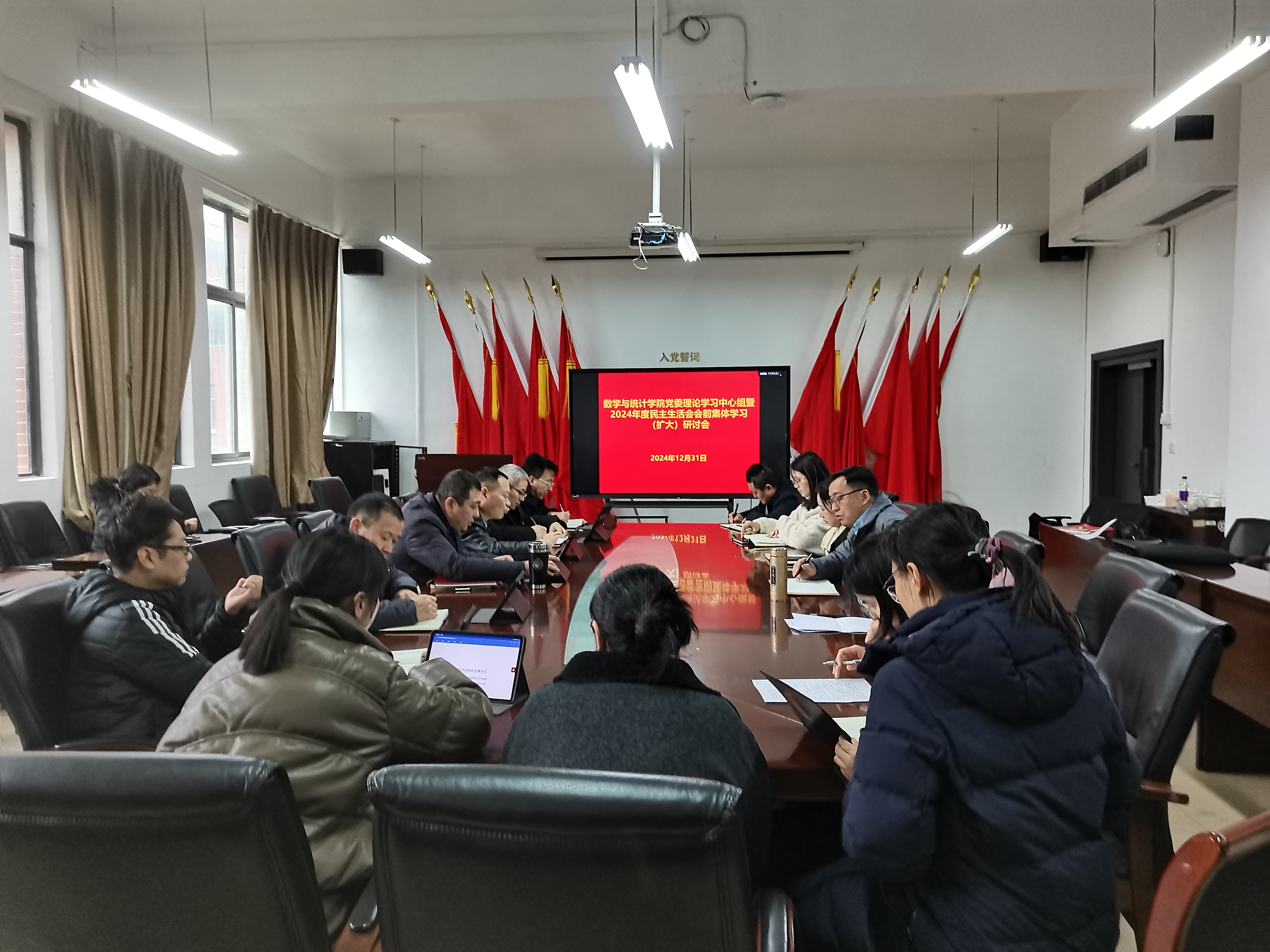 12月31日上午,威廉希尔williamhill在志学楼331会议室举行党委理论学习中心组暨2024年度民主生活会会前集体学习(扩大)研讨会,公司党委领导班子出席,非党员领导、各科室及各系部主任、各支部书记列席,公司党委书记虞帆主持会议。
