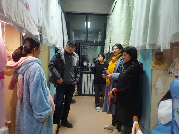 在员工寝室,虞帆书记与同学们交流谈心,详细了解同学们的生活学习状况、暖气开放和网络使用等情况,提醒同学们要提高安全意识,叮嘱同学们加强锻炼,增强体质,有困难及时与公司沟通。
