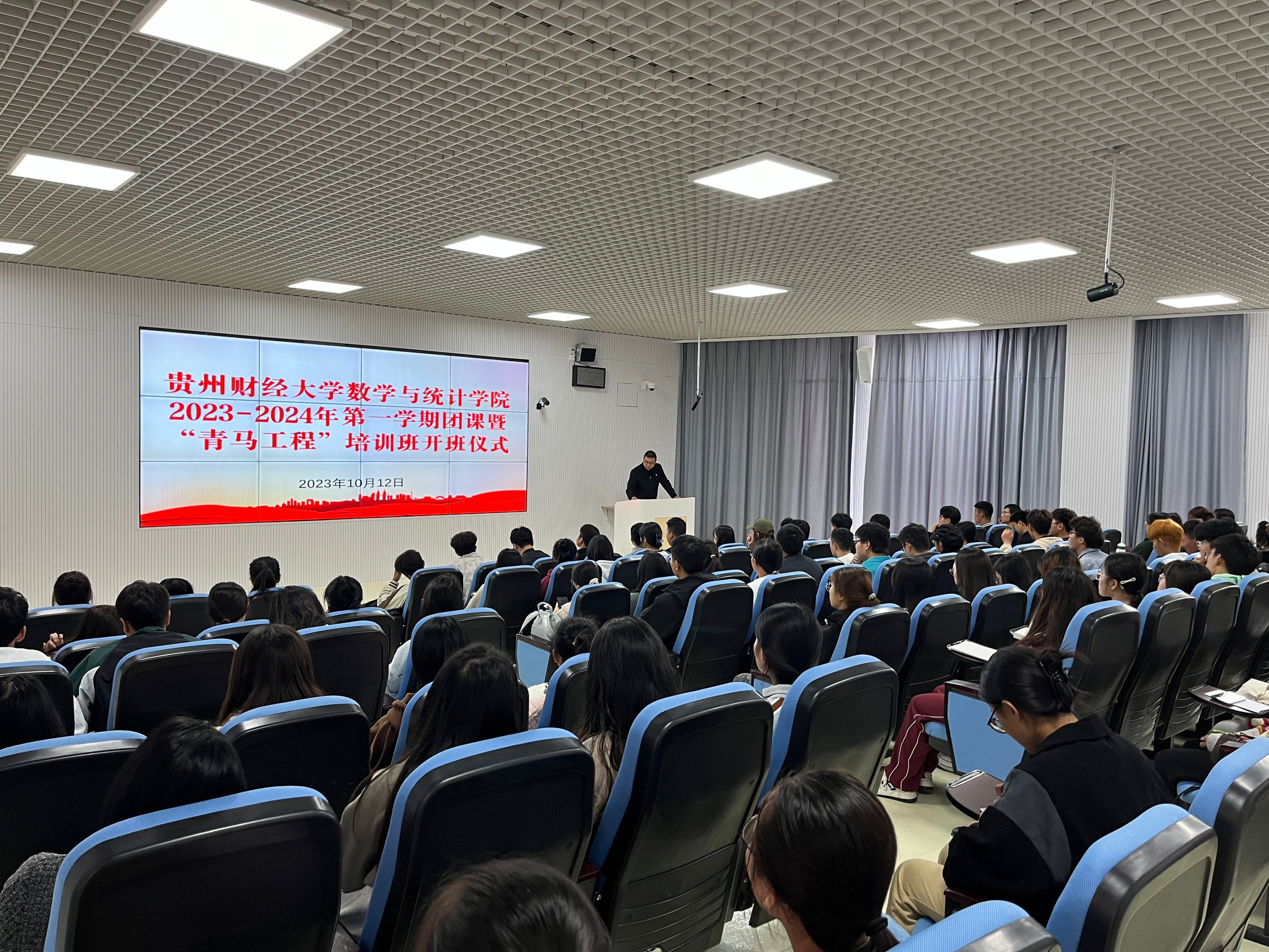 2023年10月12日,威廉希尔williamhill在花溪校区进学楼102教室举行2023-2024年第一学期团课暨“青马工程”培训班开班仪式暨第一课。公司党委书记虞帆、院团委书记贺婧及各年级团学代表共113位同学参与本次活动。
