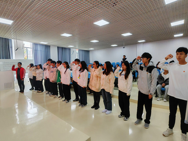 李书向全体新团员提出几点希望,希望同学们能够牢记责任,心怀感恩,做好党的助手和后备军;希望同学们能够勤奋学习,坚持不懈,做一个有担当的人;希望同学们能够树立理想,坚定信念,努力迎接时代挑战。入团仪式在激昂的中国共青团团歌中落下帷幕,团员们用嘹亮的歌声来回应此时激动的心情。