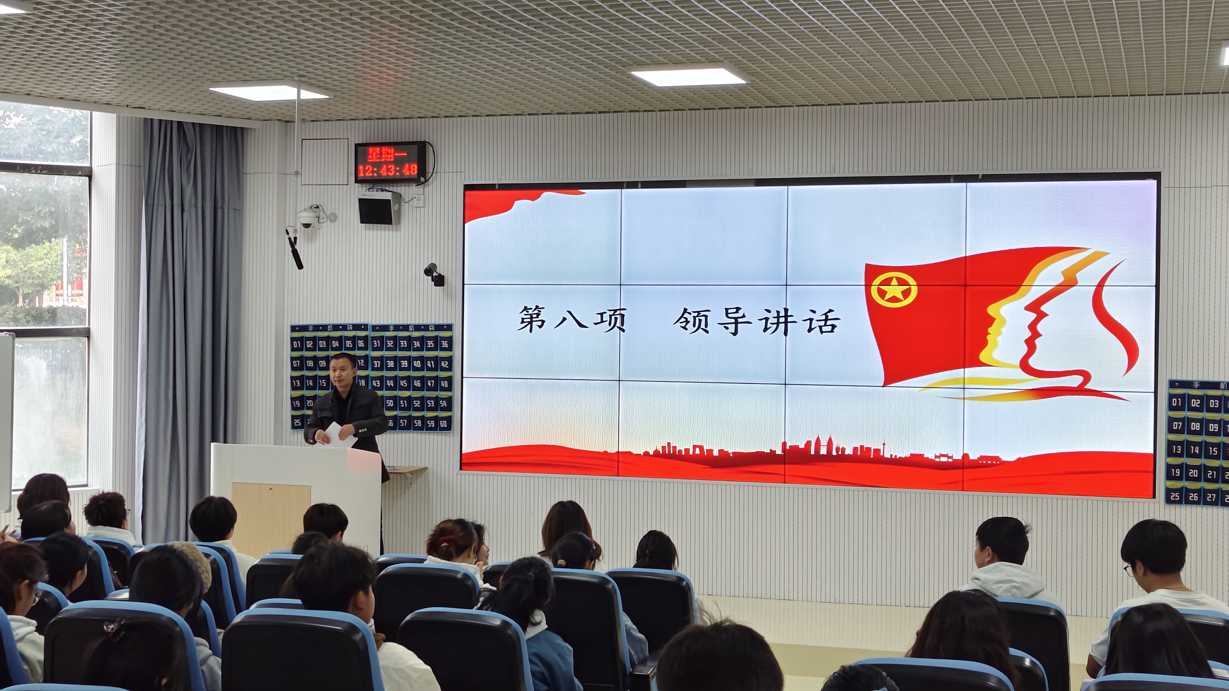 2024年11月18日,威廉希尔williamhill在进学楼103教室举行2024年新团员入团仪式。数学与统计公司党委副书记朱吉韬、院团委书记贺婧、12位新发展团员及各支部代表100余人参加本次活动。