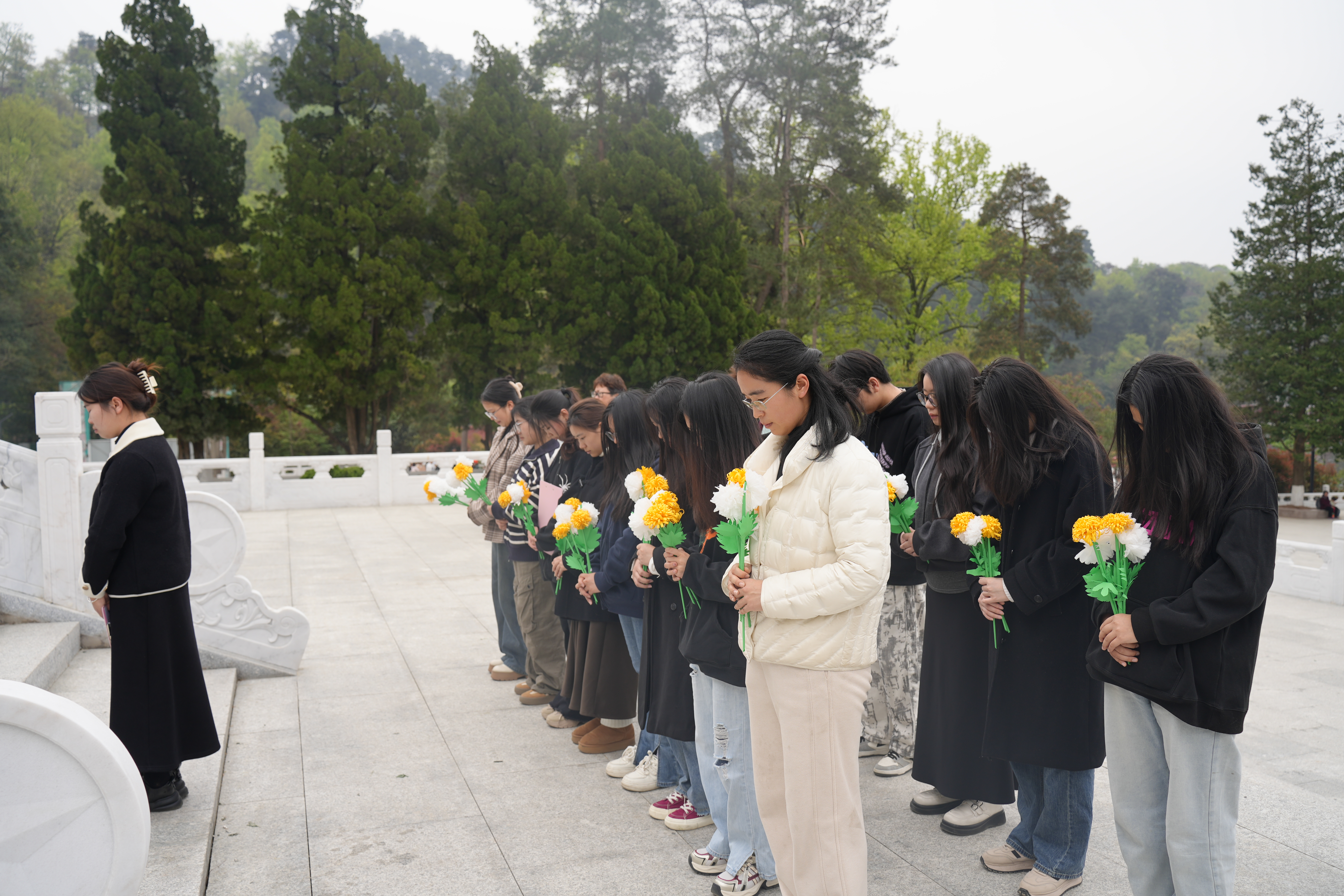 扫墓活动开始,全体人员在革命烈士纪念碑前整齐列队,集体默哀三分钟,表达对先烈的深切追思。接着,员工代表现场讲述了多位烈士的英雄事迹,带领大家回顾革命年代的峥嵘岁月。随后,同学们共同向烈士敬献自己手工做的纸花,怀着崇敬的心情悼念革命先辈,向烈士们致以深切缅怀与崇高敬意。
