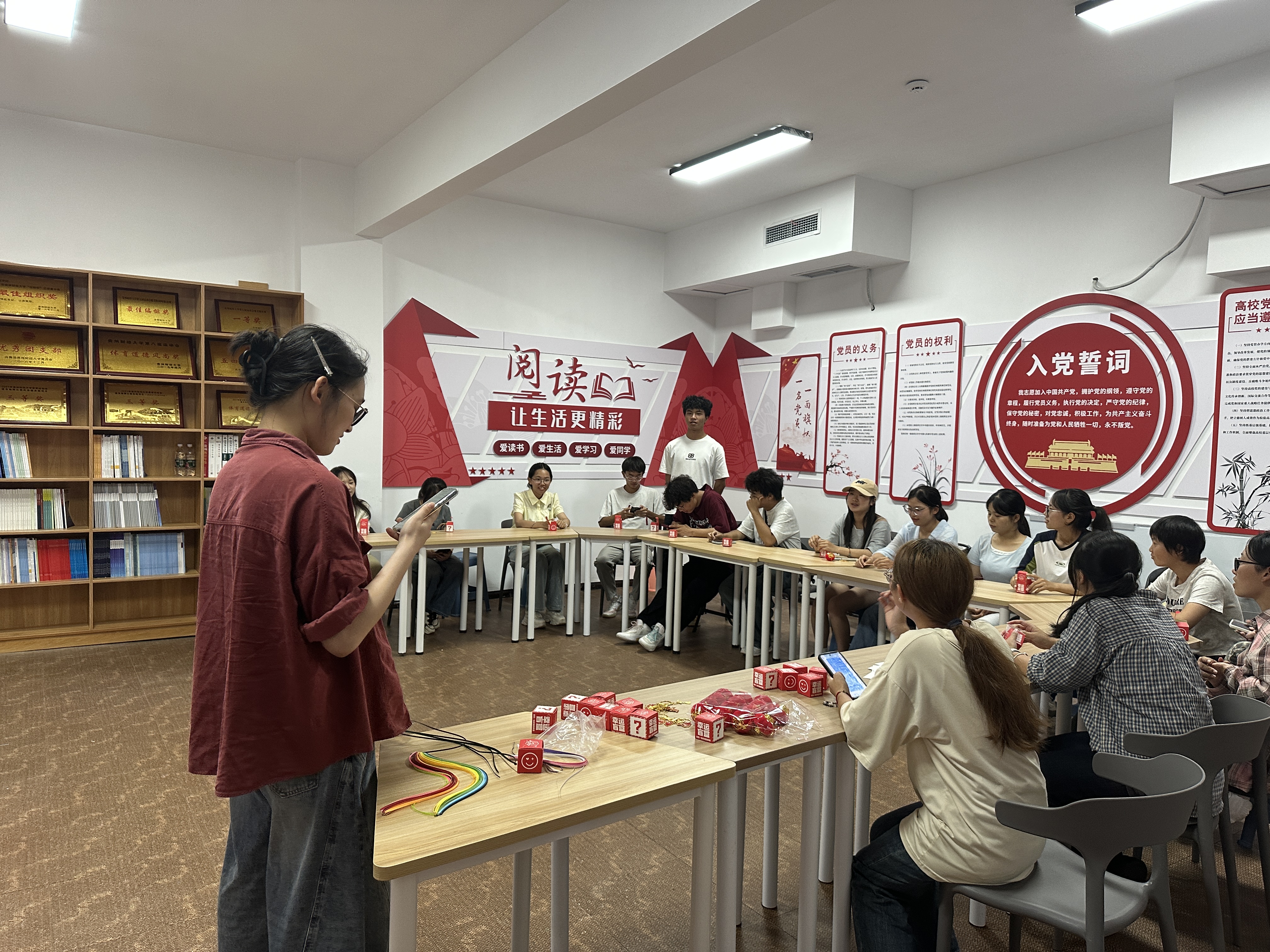 本次活动精心设计的多元趣味游戏吸引了众多同学们参与。“国旗玉兔连连看”游戏中,大家感受到家国情怀与传统节日元素的巧妙融合;“家国知识盲盒”环节,拆开盲盒的惊喜与知识问答的互动相结合,让同学们在趣味体验中学习传统文化知识;“灯笼接力传递”活动更是将气氛推向高潮,同学们手递灯笼、接力前行,在互动中传递节日的祝福与团圆的暖意。