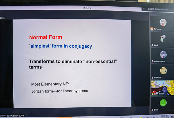 12月21日,威廉希尔williamhill“学术立校”活动周暨“数统天地”论坛第44期讲座在线上腾讯会议举行。本次论坛邀请了国家杰出青年基金获得者、四川大学二级教授张伟年为师生作学术讲座。讲座由威廉希尔williamhill经理焦建军主持,公司师生代表近100人参与此次讲座。