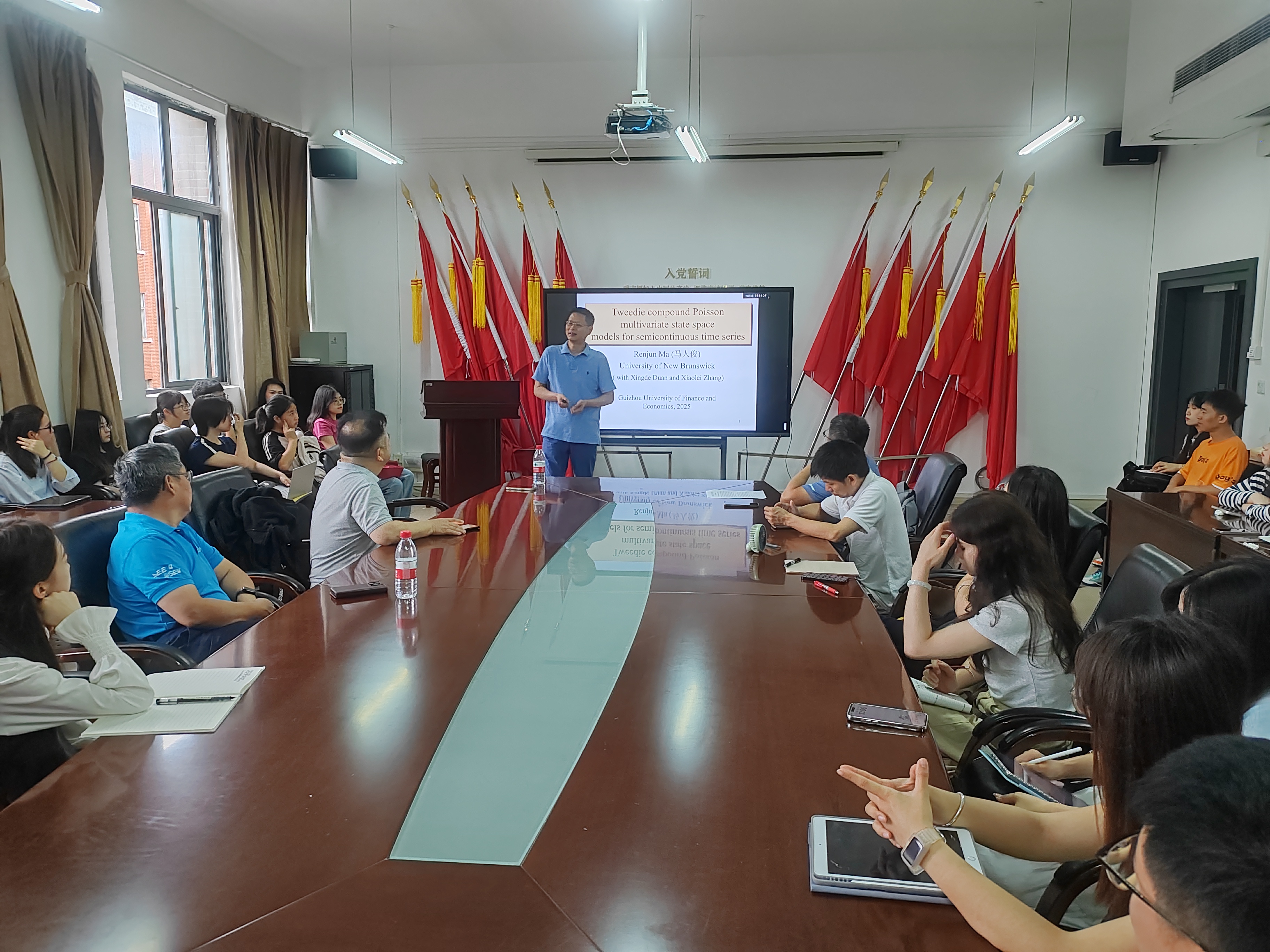 7月3日上午,公司举行“学术立校”暨“数统天地”论坛第100期讲座,加拿大新布伦瑞克大学马人俊教授应邀主讲,讲座由贵州省经济系统仿真重点实验室主任张文专主持。