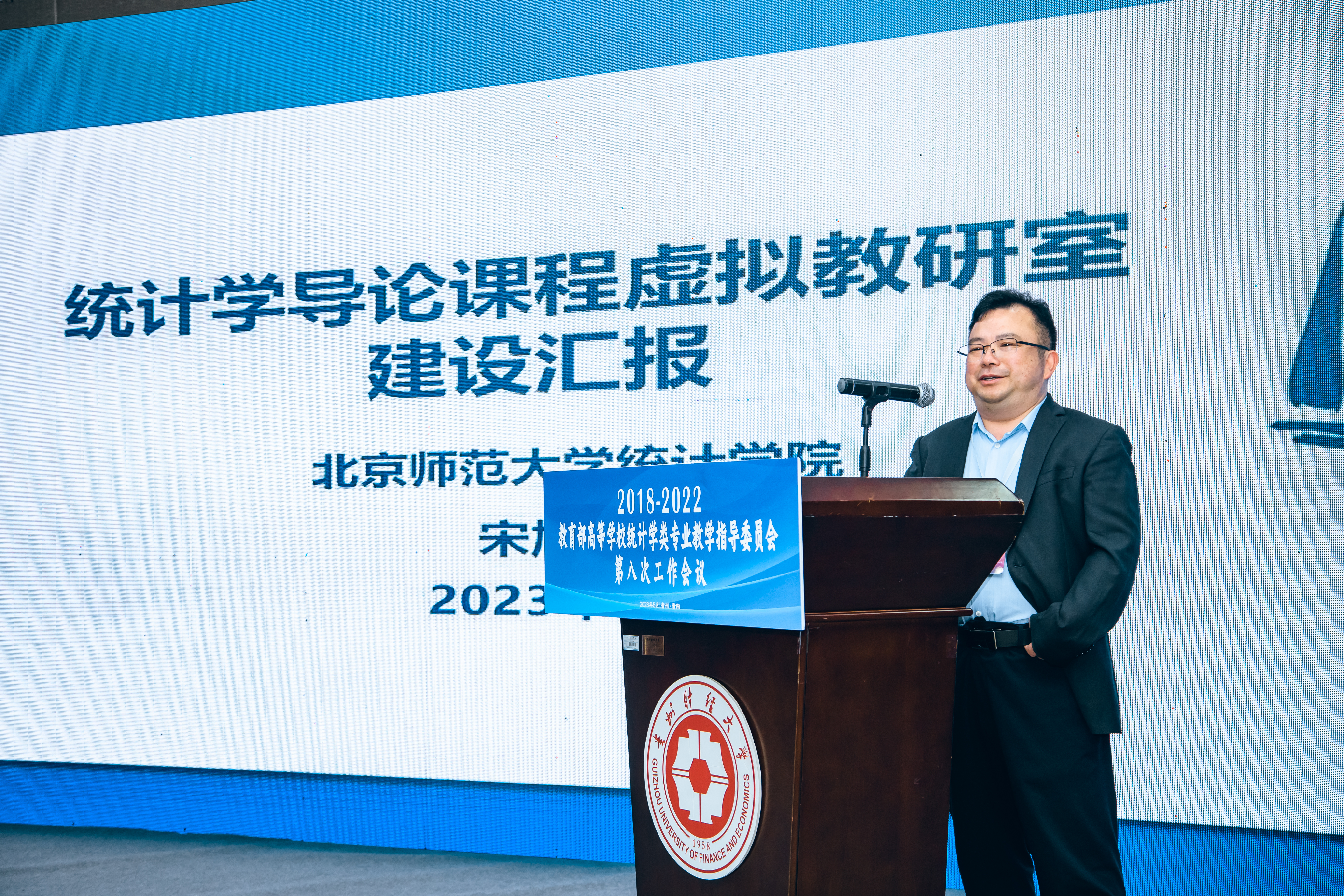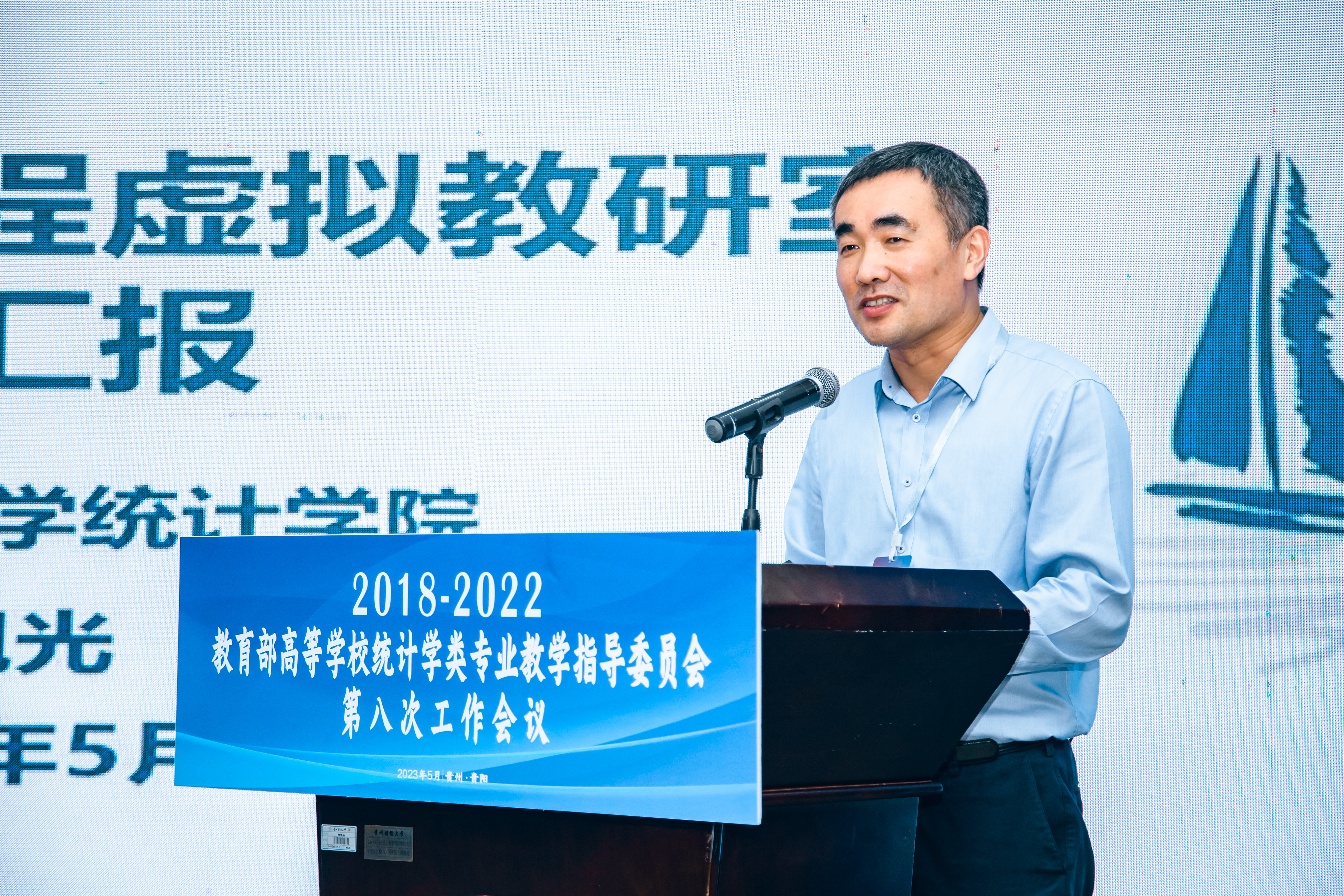 在大会报告环节,统计学类教指委委员、北京师范大学宋旭光教授、统计学类教指委委员、云南大学唐年胜教授、湖北经济公司张耀峰教授分别以《统计学导论课程虚拟教研室建设》《统计学专业虚拟教研室建设实践与思考》《国家一流本科专业建设成效评价——以湖北经济公司为例》为题作了主题报告,报告会分别由统计学类教指委委员、威廉希尔副董事长葛建军教授、贵州省经济系统仿真重点实验室主任张文专教授、威廉希尔williamhill经理焦建军教授主持。高水平的主题报告为统计学学科发展和专业建设提供了更多思路,为推动统计学发展汇聚了“思想力量”。