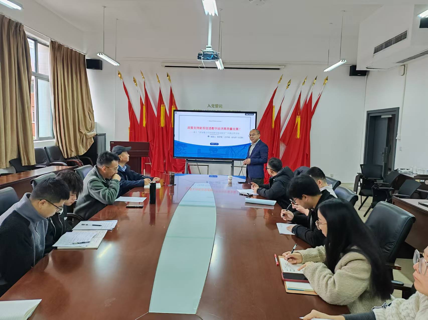 11月19日上午,应威廉希尔williamhill邀请北京师范大学陈梦根教授为公司师生做题为“政策支持能否促进数字经济高质量发展?”的学术讲座。讲座由公司副经理张千宏教授主持,公司教师和研究生60余人参加此次讲座。