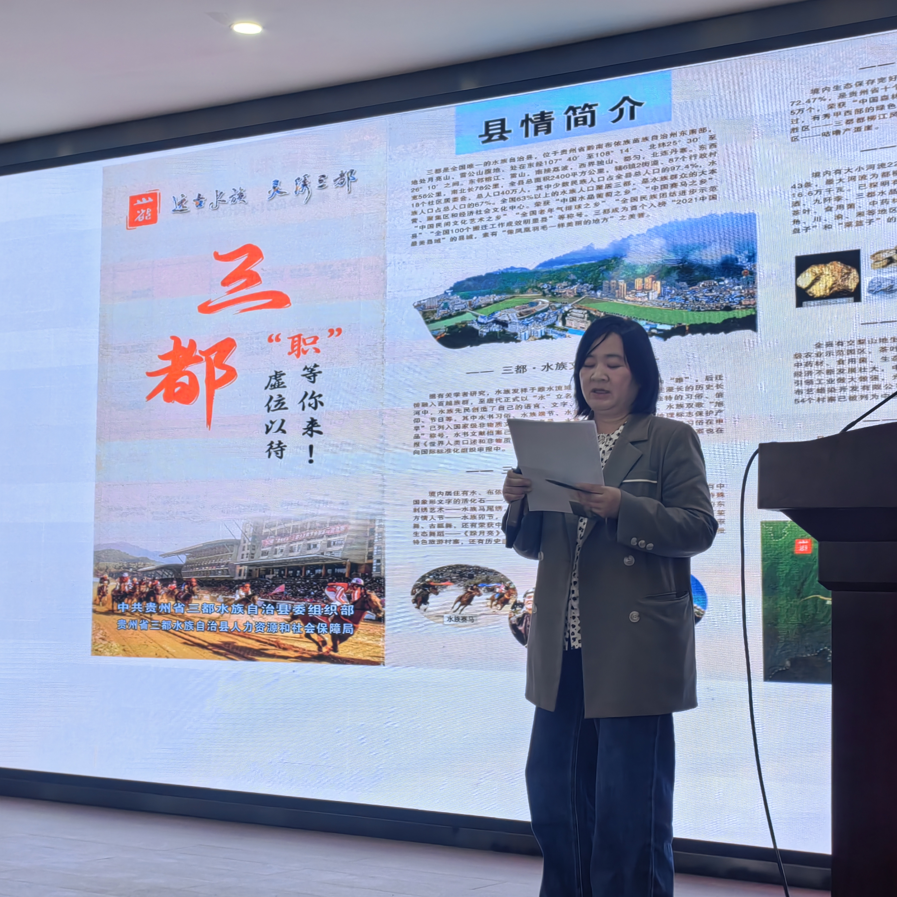 余仁艳详细介绍了贞丰县域的人才引进政策,包括配套的人才津贴、安居公寓以及子女教育保障措施,鼓励员工到企业中“先就业再择业”。黄廷华结合基层教育的实际情况,强调乡村振兴需要青年力量的注入,基层是锤炼品格的沃土,他希望同学们能够从自身出发,真正挖掘并展示自己的个性和特长,让招聘单位了解同学们的优势和潜力。他坚信,人生没有白走的路,每一步都值得铭记。覃胜虹介绍了三都县的县情——全国唯一的水族自治县,对三支一扶、西部计划志愿者聘用进行了详细的实务解读。陈婷婷重点解析了教育系统的就业路径,包括特岗教师、高校引才“绿色通道”等,并呼吁同学们考取教团队格证以拓宽职业选择。