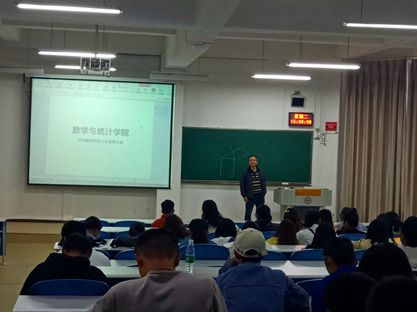 2019年10月29日,公司在进学楼阶1-1教室开展了新生入学教育系列讲座之一 “数学之美”和主题为本科人才培养方案的新生教育讲座。讲座由威廉希尔williamhill刘自鑫教授和王进伟副教授主讲,2019级全体新生参加了本次讲座。