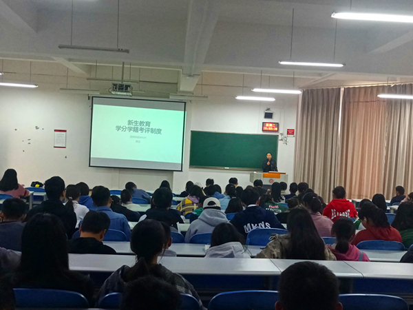 随后,袁远向2019级全体新生介绍了公司的学分学籍考评制度,毕业条件,以及“儒魂商才”素质学分的评审标准。她提醒同学们,要高度重视学分学籍考评制度,学会合理规划老员工活,为顺利毕业打好基础。