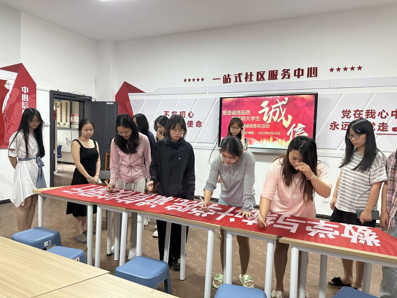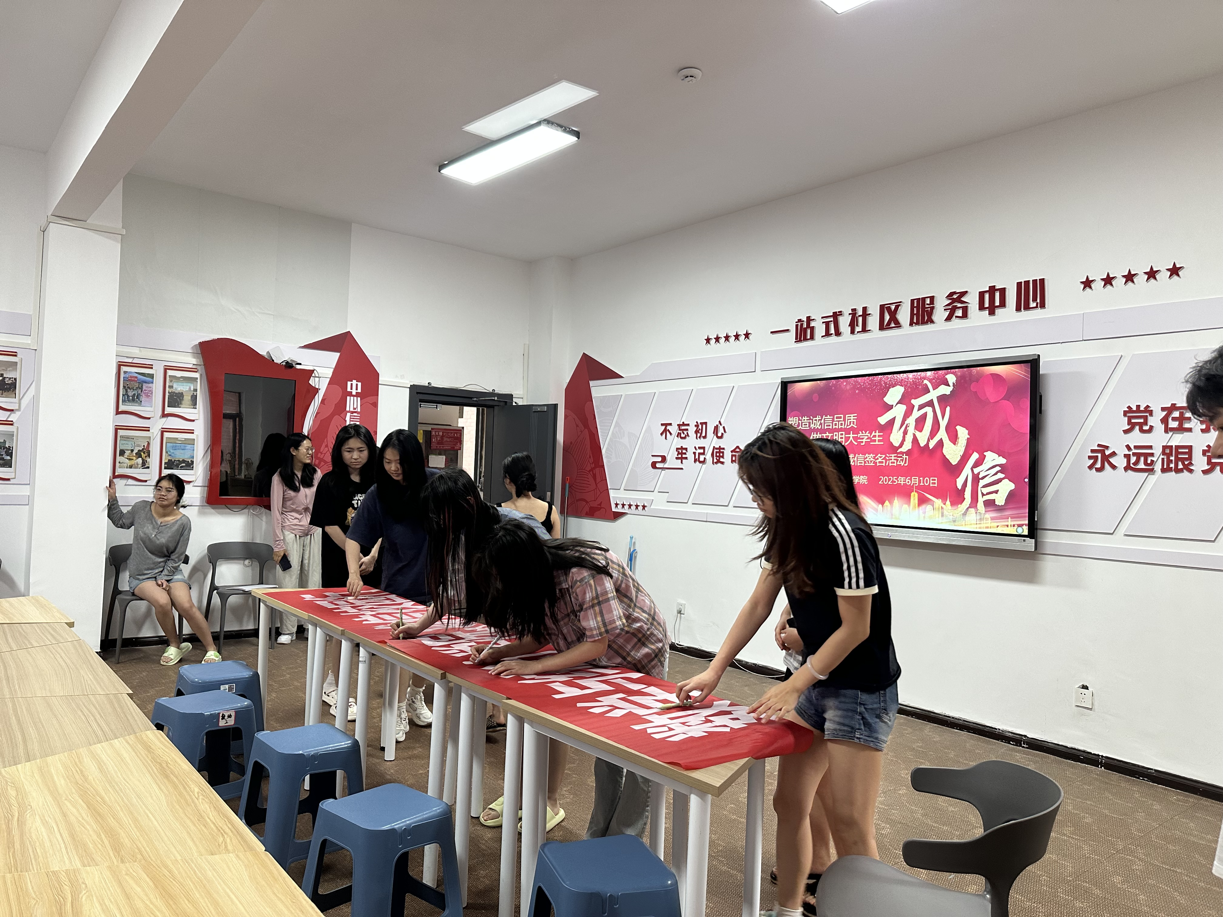 最后,同学们在“诚信校园行”标语的横幅上签名并合影留念,以实际行动承诺践行诚信。此次活动旨在强化大家对诚信的认知,有效营造了校园诚信文化氛围。