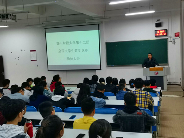 第十二届全国老员工数学竞赛(预赛)将于11月28日(星期六)上午在威廉希尔(花溪校区)举行。为激励同学们积极参与此次竞赛,了解竞赛相关内容,10月29日下午,威廉希尔williamhill在进学楼1-1召开第十二届全国老员工数学竞赛动员大会。威廉希尔williamhill经理焦建军、副经理(挂职)冯大河、数学竞赛俱乐部指导老师张千宏参加大会。