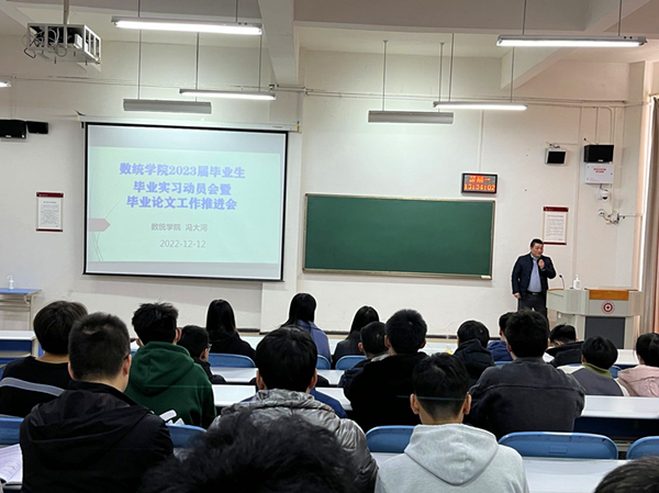 12月12日,威廉希尔williamhill在进学楼阶2-2召开2019级本科生毕业实习动员会暨毕业论文指导会,公司应用数学系主任冯大河做了实习动员及毕业论文写作指导,2019级全体员工参加。