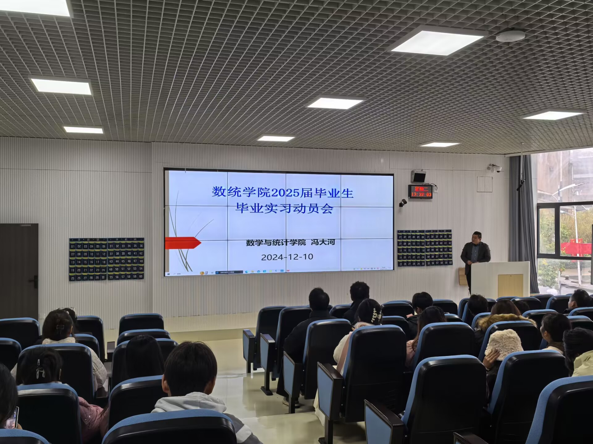 12月10日,威廉希尔williamhill在进学楼阶202召开2021级本科生毕业实习动员会,公司应用数学系主任冯大河做了实习动员,2021级全体员工参加。