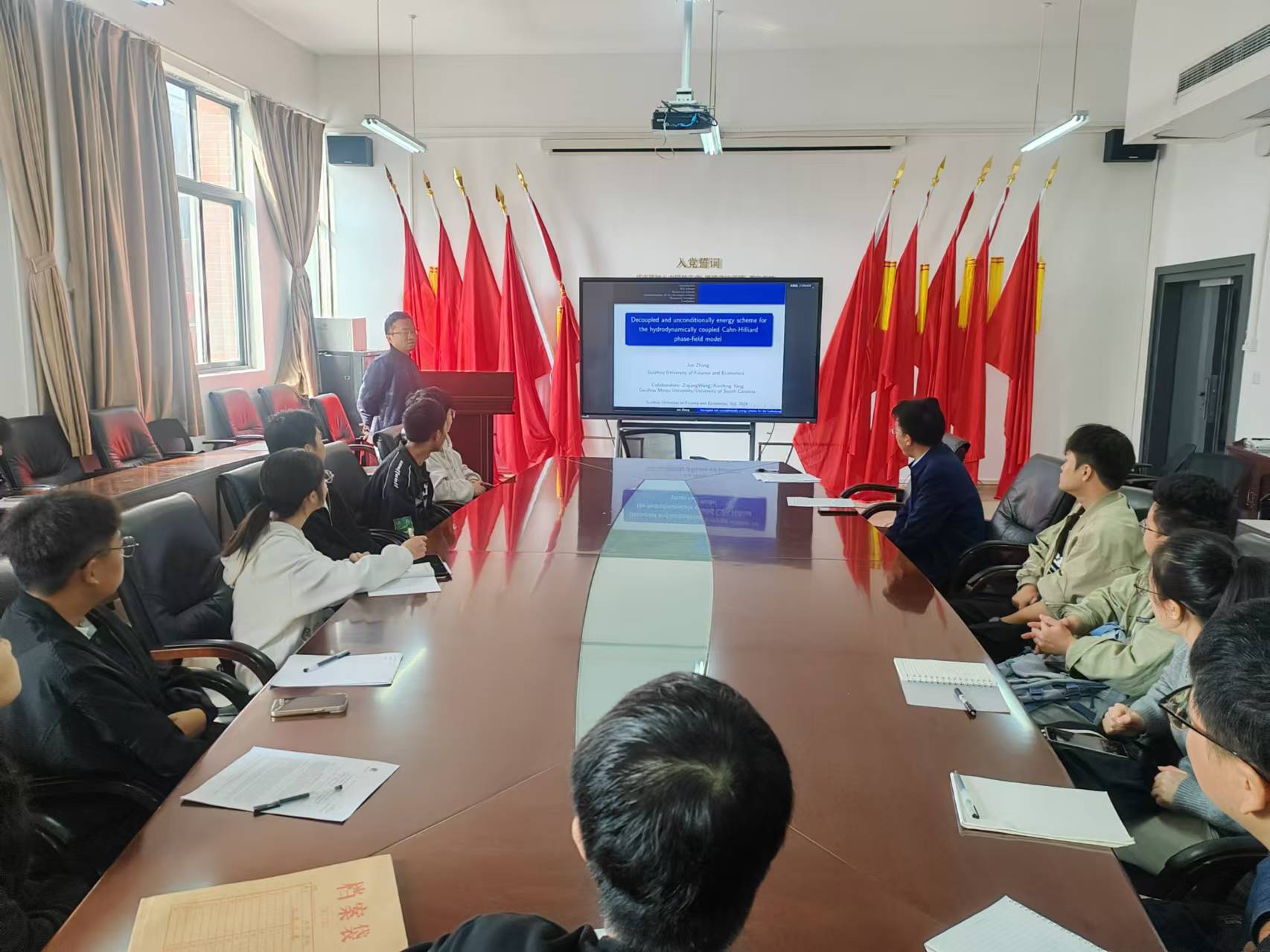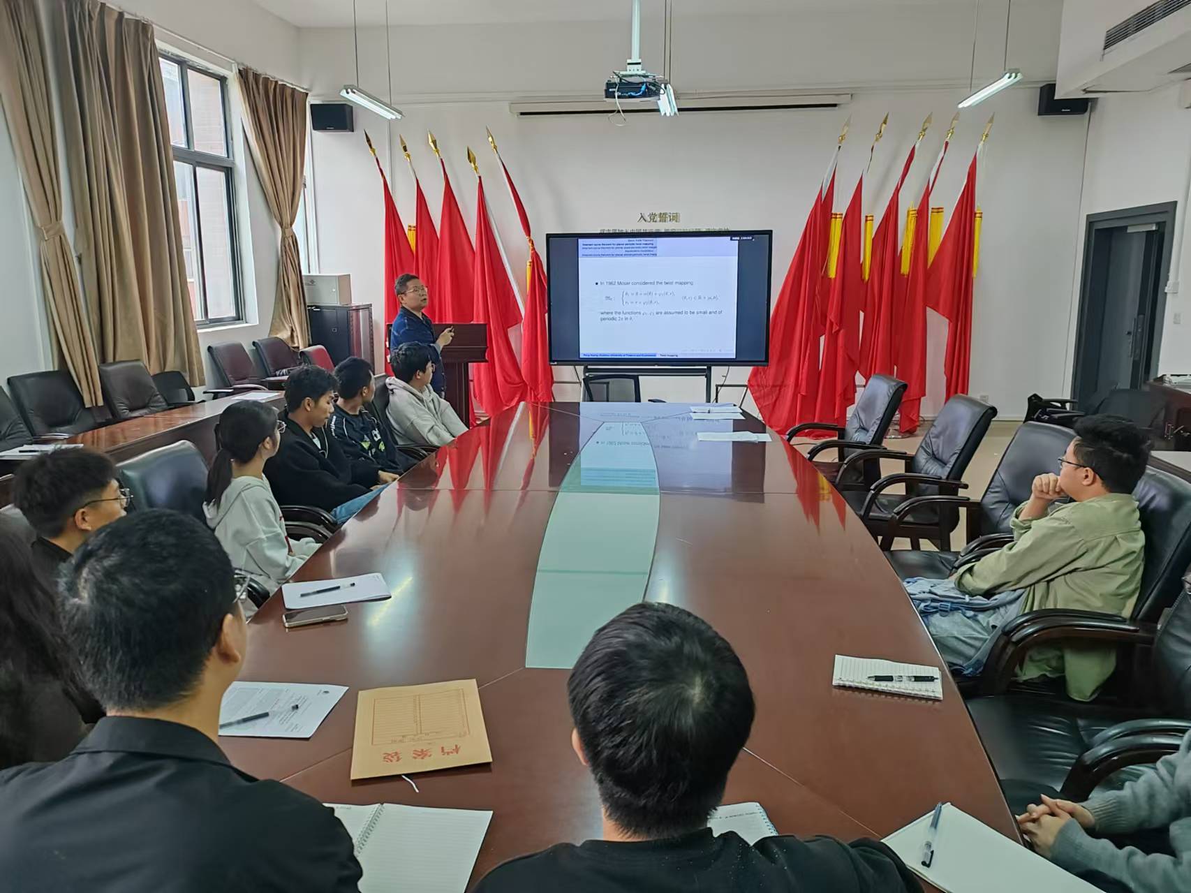 为了在导师和员工中形成潜心学术、教学相长的良好风尚,公司邀请了两位优秀导师进行研究成果分享。张俊教授作了题为“三嵌段共聚物熔体的流体动力学耦合三元Cahn-Hilliard相场模型的解耦、二阶时间精确和无条件能量稳定方案”,首先介绍了三嵌段共聚物熔体的流体动力学耦合相场模型,然后详细介绍了如何引入一个新的非局部变量及其时间演化方程得到一个完全解耦的时间推进方案。黄鹏副教授作了题为“扭转映射理论及其在非对称阵子中的应用”的报告,报告首先对KAM 理论进行了介绍,接着阐述了平面扭转映射中拟周期或概周期的不变曲线的存在性。