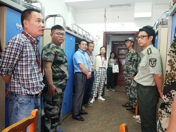 焦建军经理一行与同学们亲切交谈,了解他们入校以来的思想动态、军训和生活情况,以及存在的困难。
