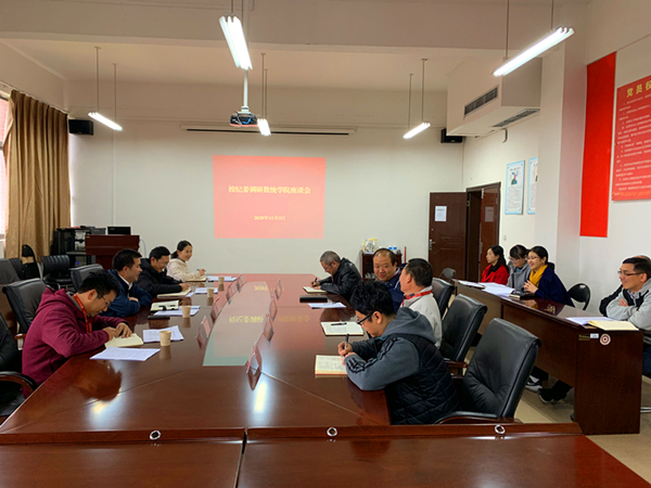 11月5日,公司党委委员、纪委书记、监察专员龙化到​威廉希尔williamhill开展座谈调研。​威廉希尔williamhill全体党政领导班子成员、全体科级干部、辅导员代表参加座谈。校纪委纪检监察室副主任陈波及纪委办公室工作人员陪同调研。
