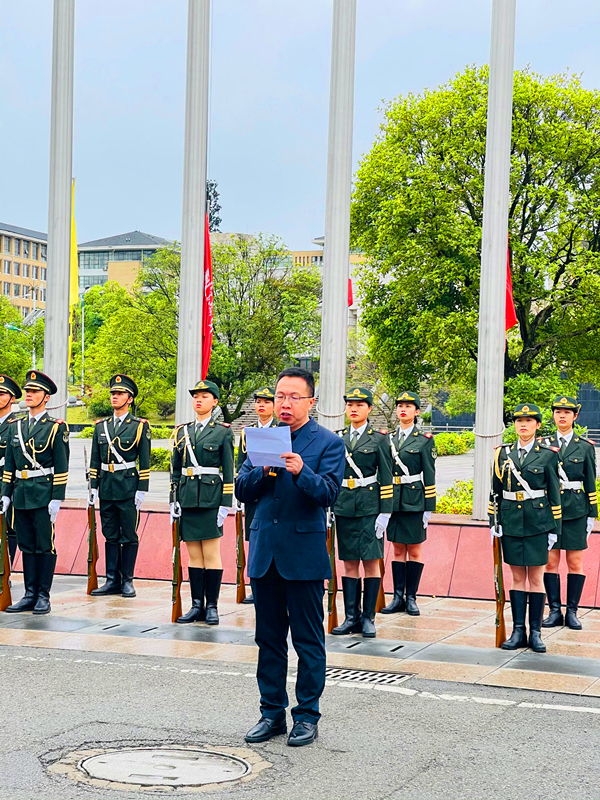公司党委副书记周剑云在国旗下致辞,他强调:“同学们正值青春年华,应将我们的青春与党的发展联系起来,跟党走,感党恩,不负青春不负好时代。”接下来进行重温入党誓词、入团誓词。升旗仪式在合唱《没有共产党就没有新中国》歌曲中结束。