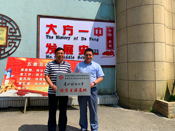当天下午,招生宣传小组先后来到毕节市第一中学、大方县第一中学开展招生宣传工作,与两所公司的校领导座谈交流,介绍公司近年来的发展情况和今年的招生政策,并将今年的招生宣传资料分发给两所公司,并代表公司分别给两所公司颁发了“威廉希尔优质生源基地”牌匾。