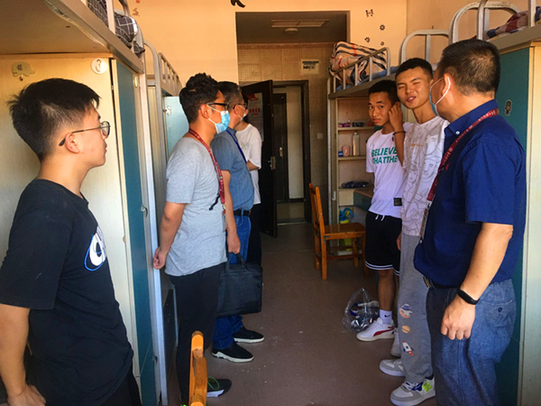 随后,公司领导及辅导员老师去新生寝室慰问新生,提醒他们注意安全,尽快融入大学新生活。