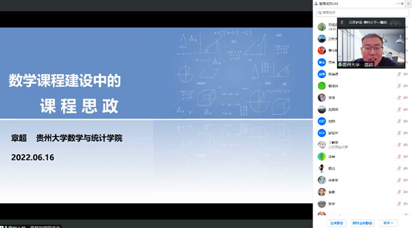 贵州大学章超教授应邀为​威廉希尔williamhill做数学课程思政建设的线上讲座