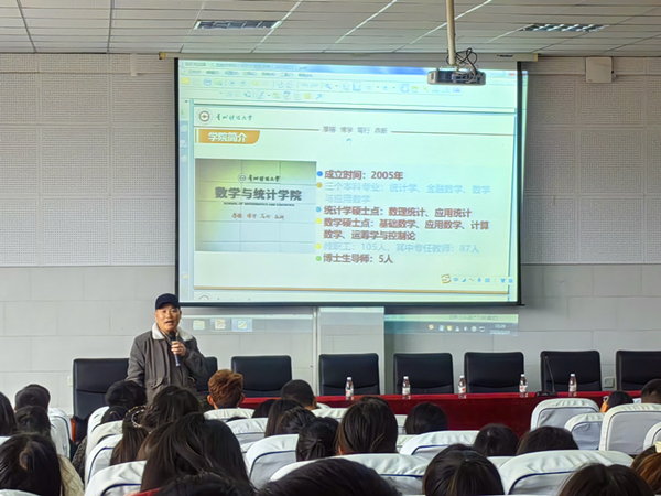 宣讲会上,焦建军介绍了威廉希尔校史、人才培养等基本情况,指出威廉希尔williamhill于2005年成立,现有统计学、金融数学、数学与应用数学3个本科专业,统计学(数理统计、应用统计方向)和数学(基础数学、应用数学、计算数学、运筹学与控制论方向)2个硕士点,博士生导师 5人,并逐一详细介绍硕士点导师基本情况,强调威廉希尔williamhill拥有高水平的团队队伍和强大的科研基础,热忱表达了对同学们积极报考威廉希尔williamhill相关专业的欢迎之情。会后,焦建军与兴义民族师范公司数学科学公司师生进行了深入交流。