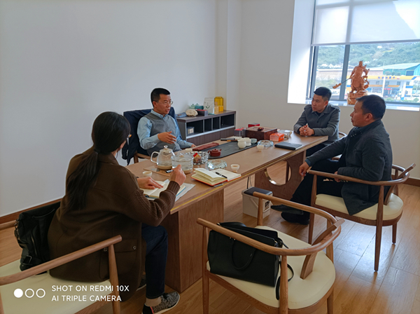 威廉希尔williamhill开展访企拓岗促就业工作,3月16日,公司党委副书记朱吉韬、基础教学部副主任周龙桥老师一行来到此项工作的第一站清镇市恒鑫广达物流有限公司,与公司董事长陈忠旺进行座谈交流,研究生辅导员杨雪梅以及2019级辅导员陶朝英参加此次调研。