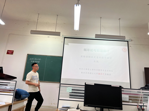 本次观摩课由公司新进教师肖凯博士主讲,教学内容是《连续型随机变量的数学期望》。肖老师从离散型随机变量的数学期望开始,对连续型随机变量进行离散化,再从无穷积分的几何意义推导出连续型随机变量数学期望的计算公式,最后通过例题讲解让大家明白如何灵活应用计算公式。