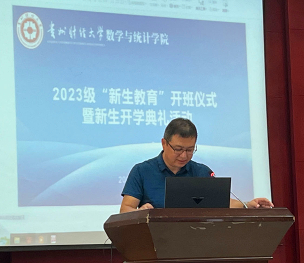 王舒慧同学代表新生发言,表达了新生们对公司的关爱倍怀感激,将珍惜大学时光,书写属于他们的新篇章。辅导员陶朝英在发言中表达了对新生的无私关怀,她表示将用心、用情、用行动陪伴孩子们度过四年大学时光。应用数学系主任冯大河代表系部主任对新生的到来表示祝贺,他希望同学们在未来四年能铸炼品格,懂得感恩。