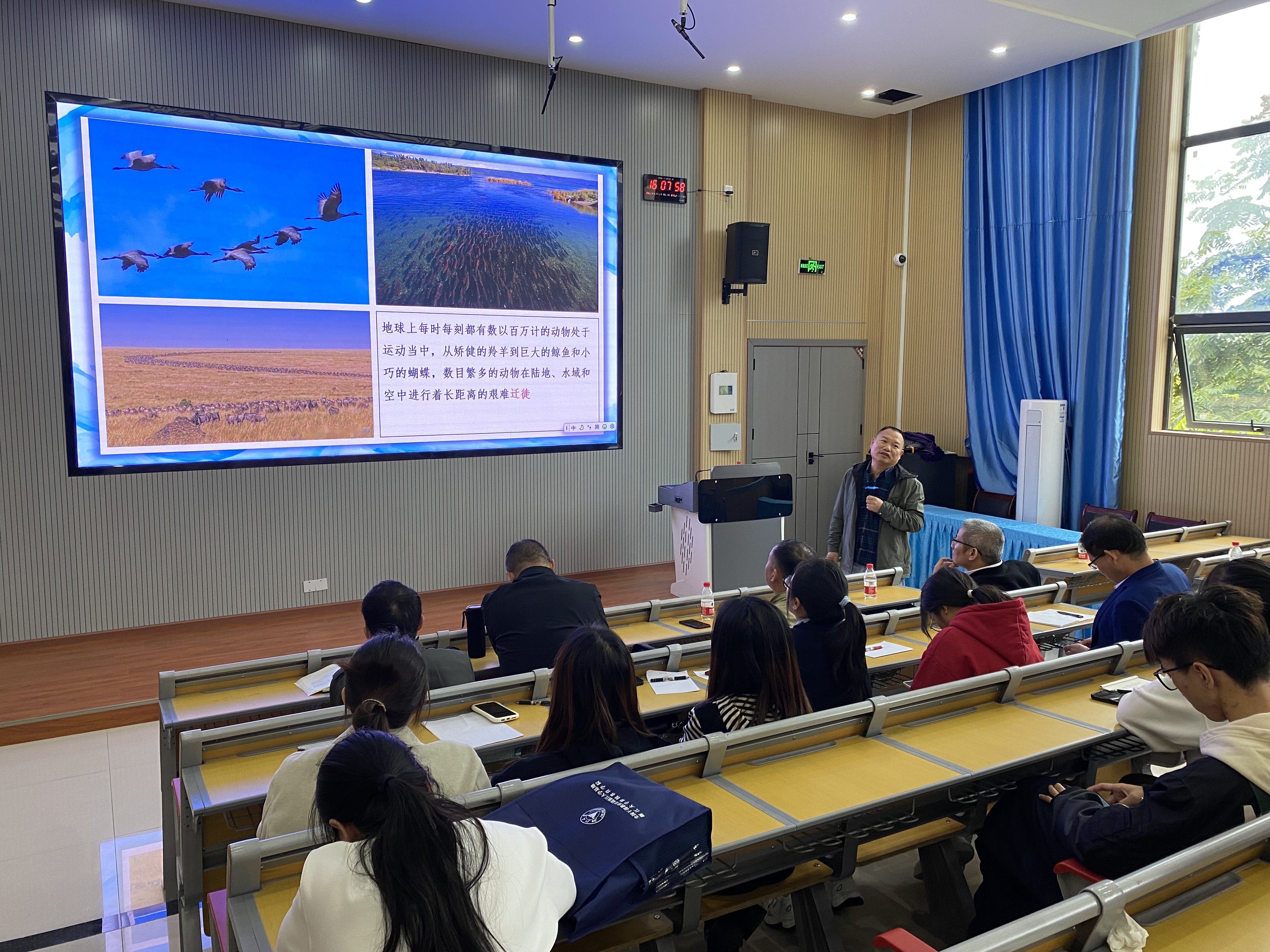 焦建军还在安顺公司作了一场《一类食饵总群在繁殖区与非繁殖区季节性迁徙的捕食模型的动力学研究》的专题报告,提前引导同学们了解到研究生阶段应该学什么,怎么学。