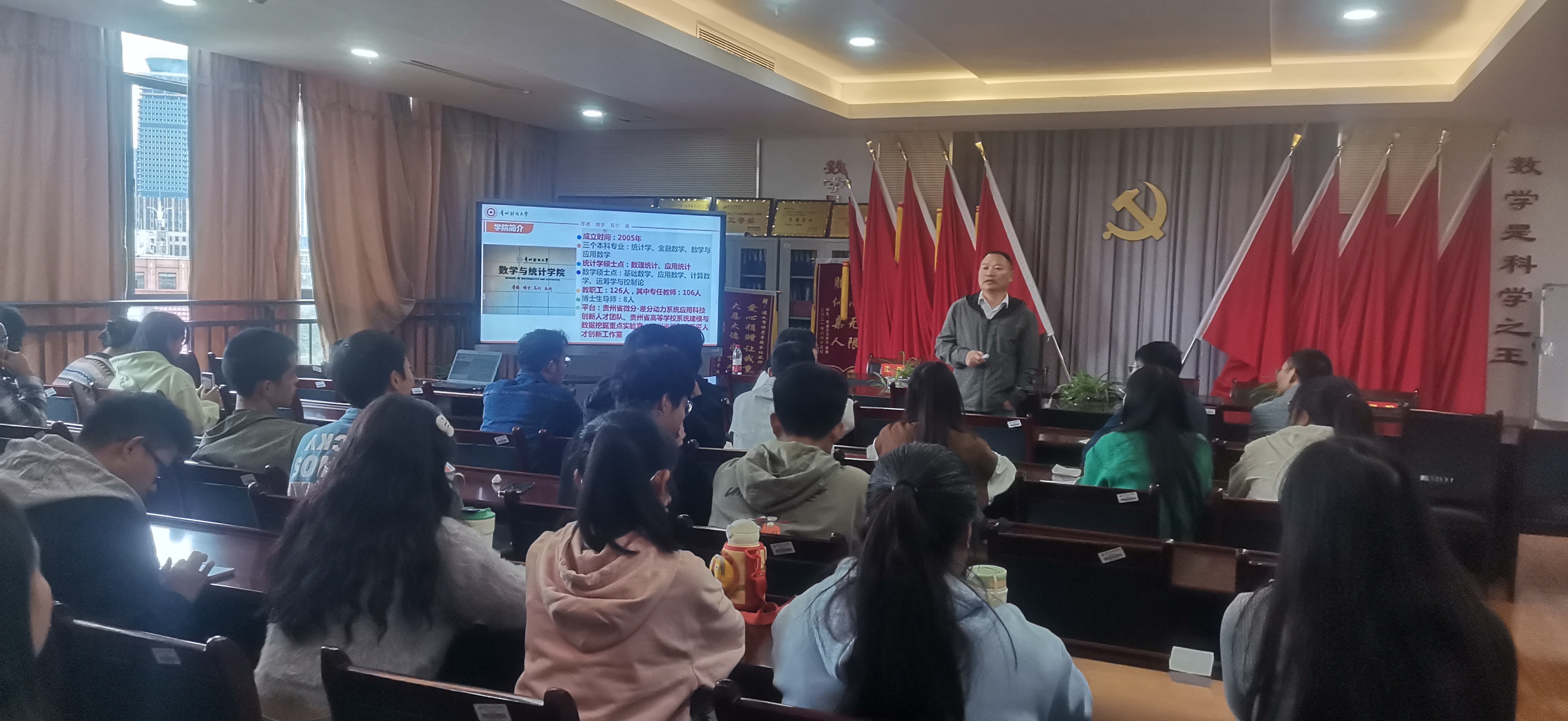 10月11日、12日,数学与统计公司党委副书记、经理焦建军先后赴遵义、铜仁开展研究生招生宣传,公司党委副书记朱吉韬陪同前往。遵义师范公司数学公司、铜仁公司大数据公司领导、老师和员工参加宣讲会。