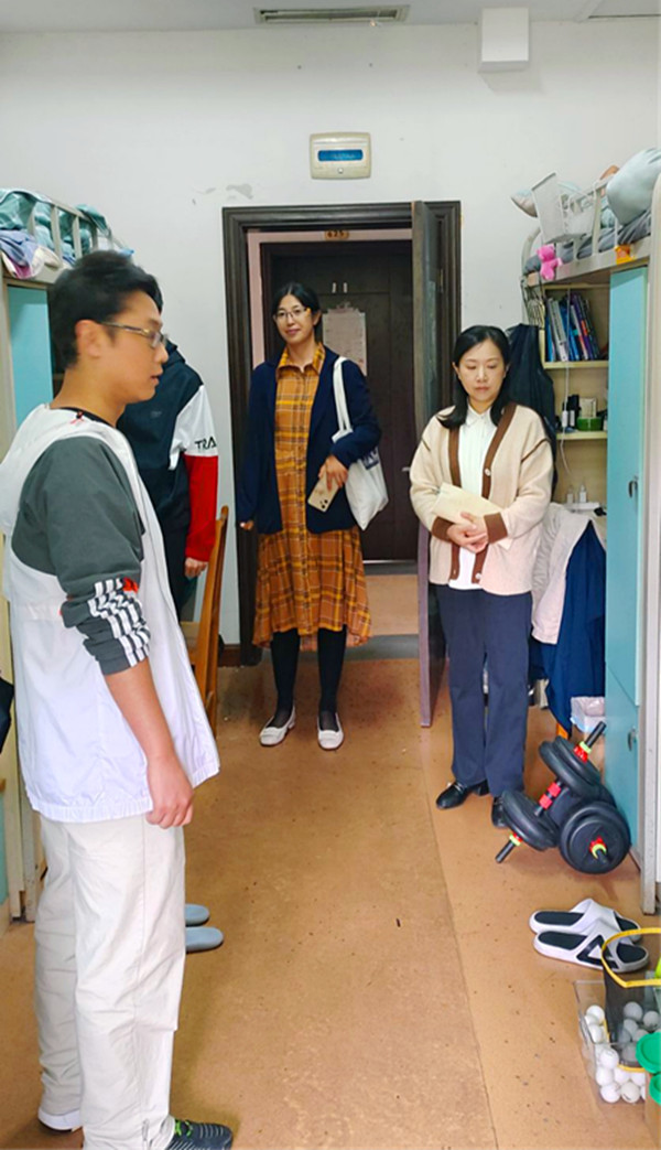 6月4日,公司党委书记虞帆、党委副书记李书和辅导员深入“一站式”员工社区,实地走访樱花苑一栋、翠竹苑一栋、翠竹苑二栋员工公寓,并与同学们亲切交谈。