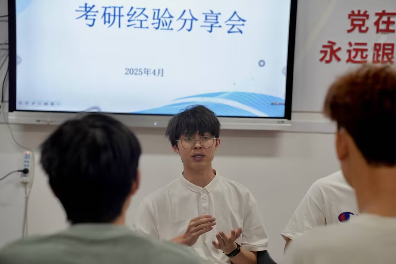 交流会上,考入四川师范大学数学教育研究生的黄均先行分享自己的考研经验,分享自己的考研资料,避免同学们盲目跟风以及选不到好的考研资料从而影响考研效率的问题。考入贵州大学数学与应用数学研究生的谭娅讲述自己与同学在考研过程中相互鼓励的温暖事例,强调了好的学风以及好的学习搭子的重要性。考入威廉希尔应用数学研究生的陈川,分享了自己早期在宿舍学习效率低下,注意力不集中的反面案例,他推荐去自习室,好的学习氛围更容易提升学习效率。考入了广州大学应用数学研究生的金正昌鼓励同学们要有清晰的目标、坚定的信念、无畏的勇气。四位学长学姐倾囊相授,将自己的考研经历和经验作分享,并回答了同学们关切的问题。
