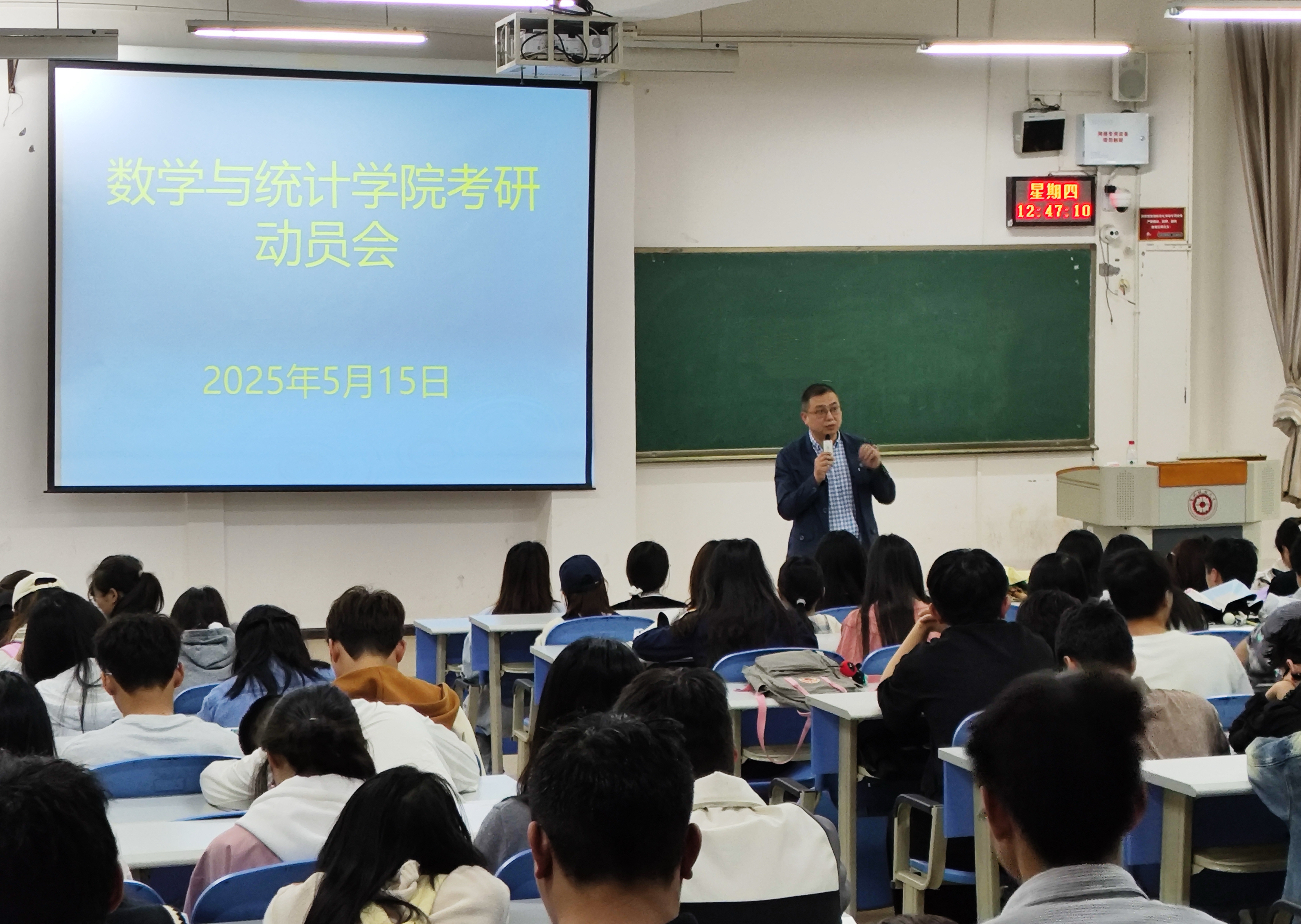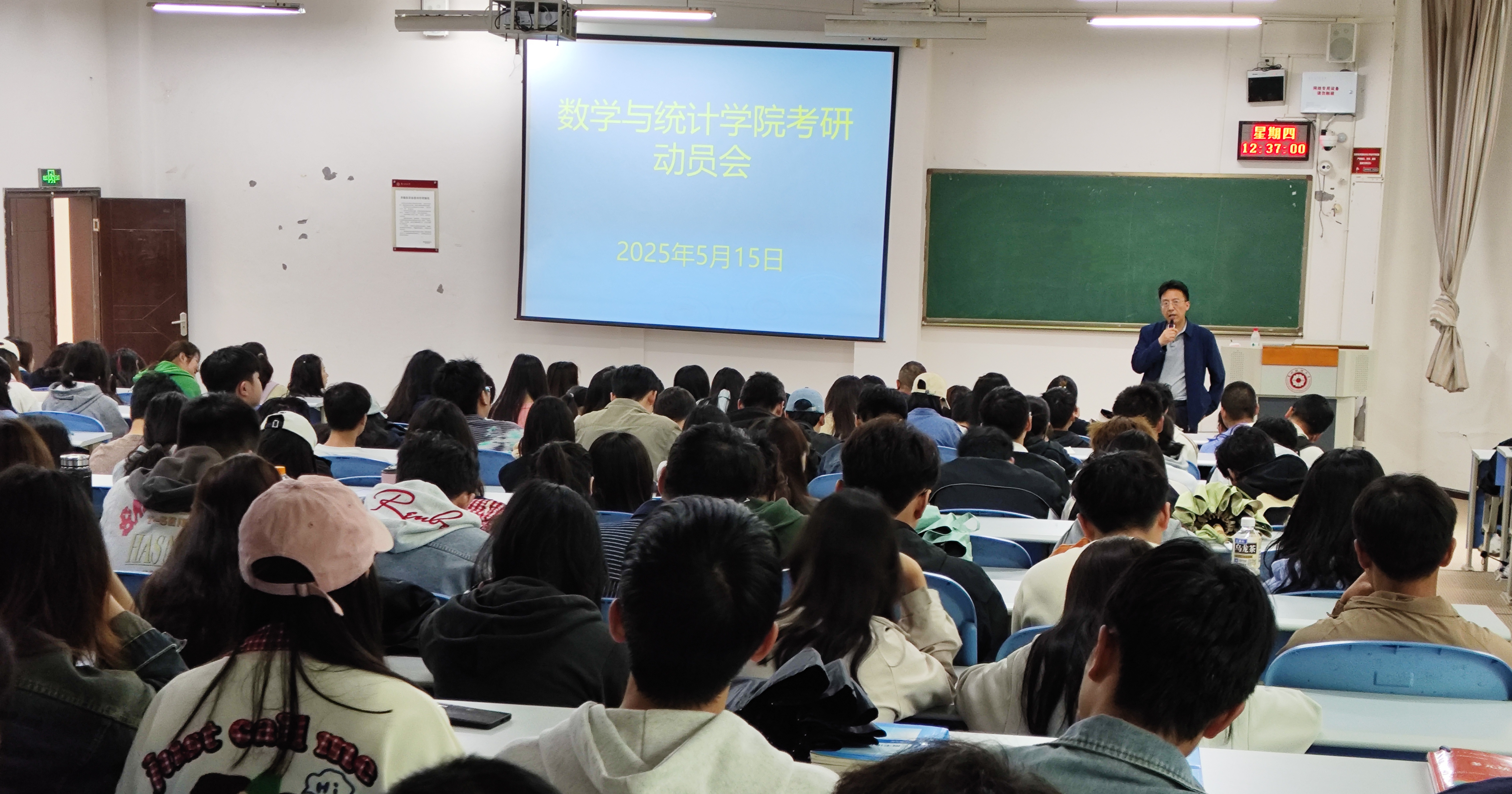 5月15日,威廉希尔williamhill在进学楼1-1教室召开考研动员大会。数学与统计公司党委书记虞帆、副经理余孝军、副经理余张千宏以及辅导员蔡丽莉、陶朝英出席了动员大会。2022级、2023级全体员工参加。