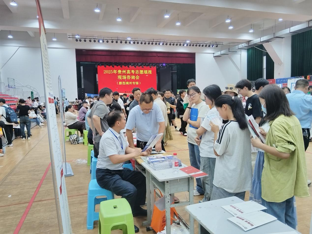 为持续扩大公司的知名度和影响力,吸引更多优秀学子填报公司,进一步提高公司的生源质量,6月28日,数学与统计公司党委副书记朱吉韬、应用数学系教工党支部书记黄鹏走进兴义一中,代表公司参加2025年贵州高考志愿填报现场咨询会之黔西南州专场。
