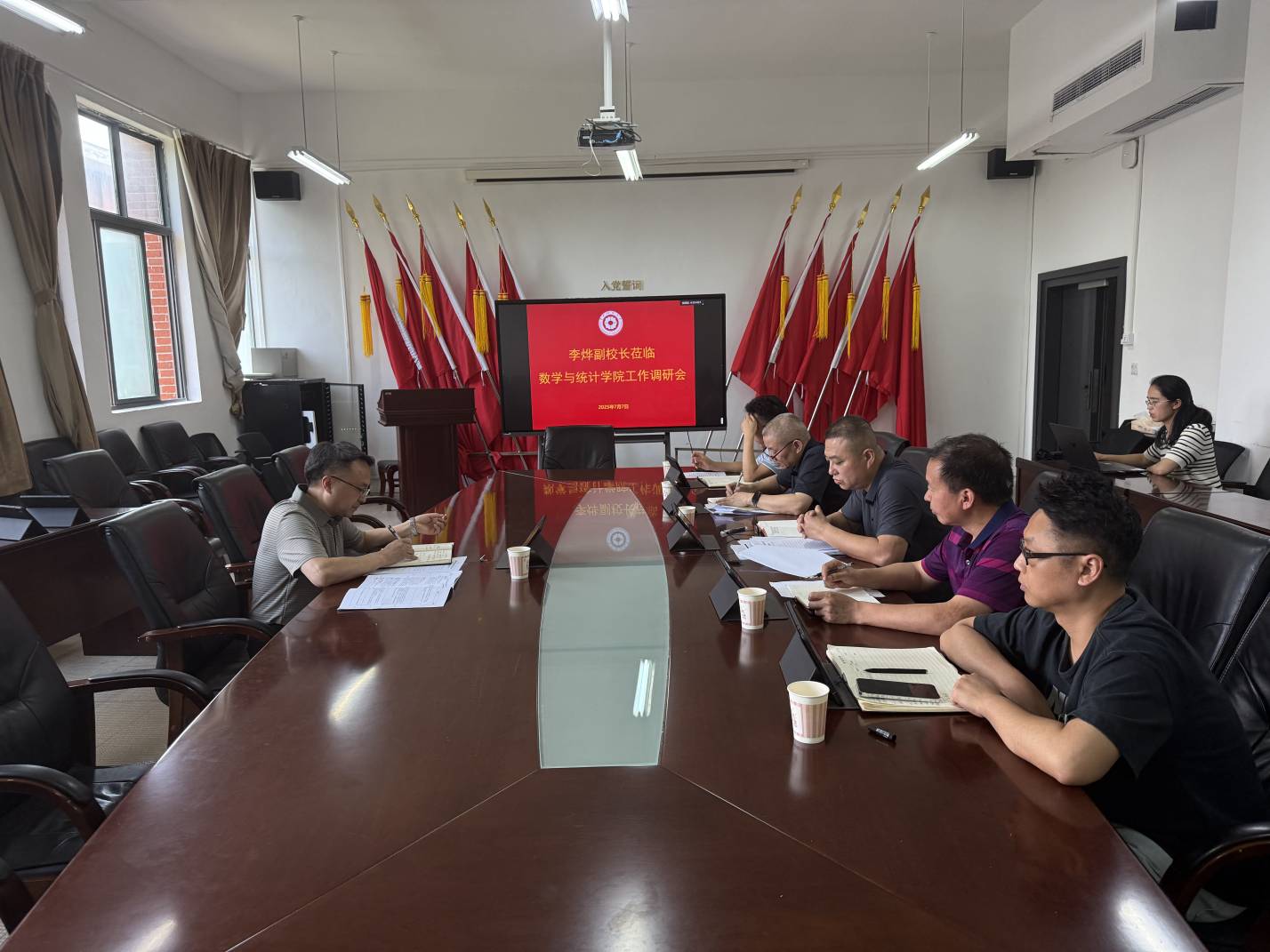 会上,虞帆总体汇报了公司党建、教学、管理及考研基本情况,其他同志汇报了审核评估推进情况、科研和团队建设、就业工作和员工管理等情况。