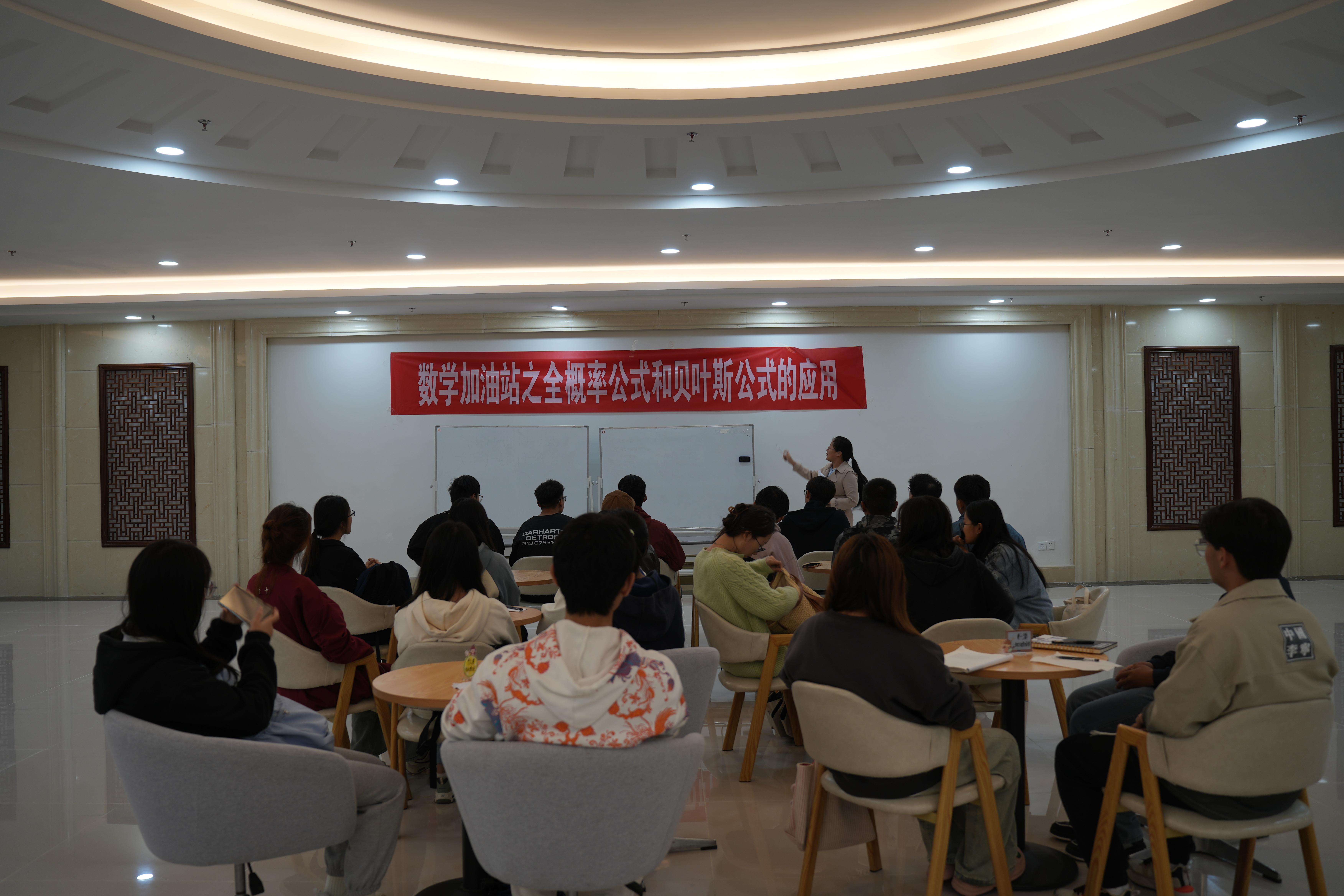 2023年10月12日,威廉希尔williamhill在员工活动中心一楼会议厅开展“一院一品”数学加油站活动。本次活动主题是全概率公式与贝叶斯公式的应用,由威廉希尔williamhill骆元媛老师作为主讲人,共计40余名同学参与活动。