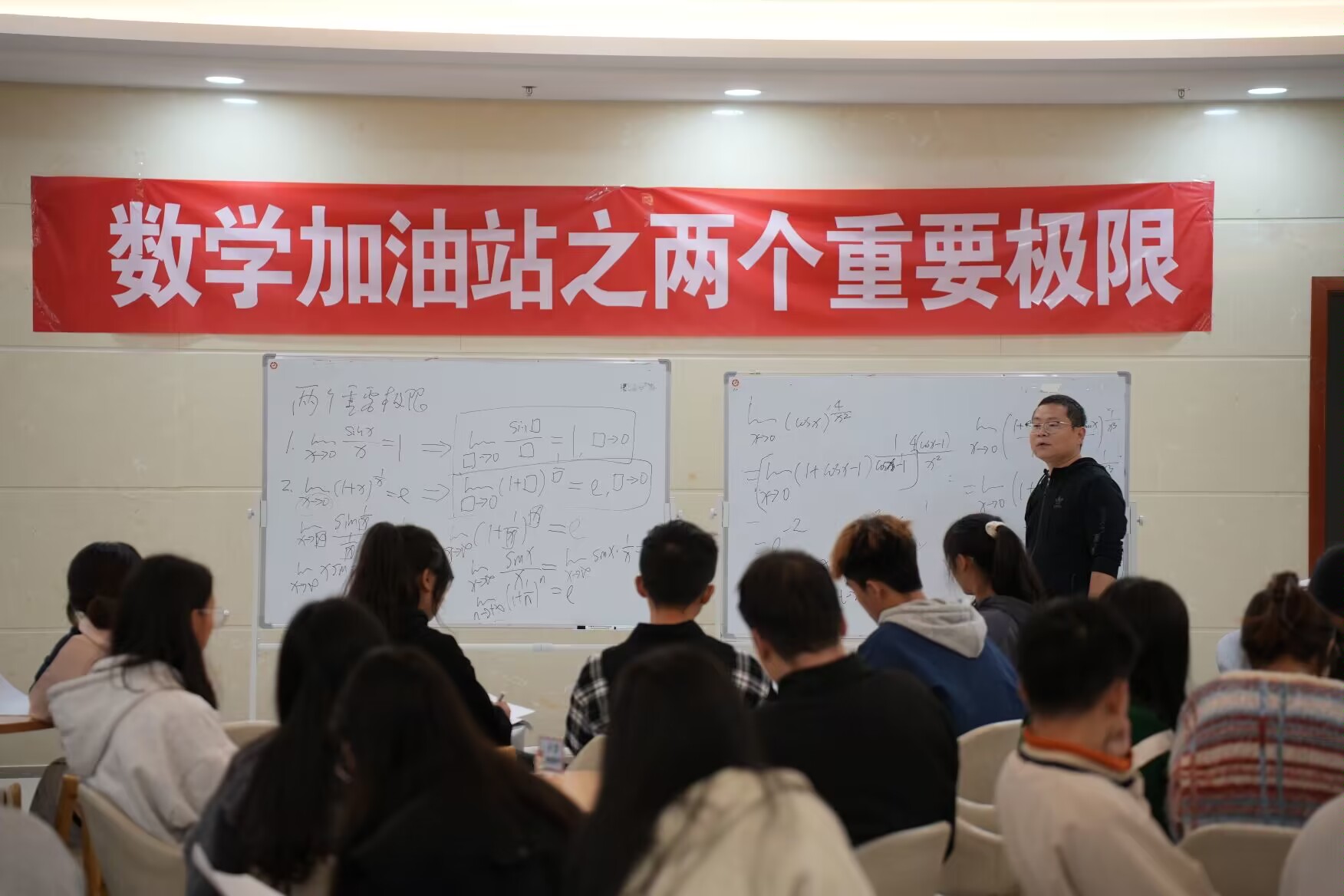 2023年10月26日,威廉希尔williamhill承办的数学加油站之两个重要的极限在公司员工活动中心开展。本次活动由黄鹏老师为同学们讲解数学中两个重要的极限,一共有四十名同学参与。