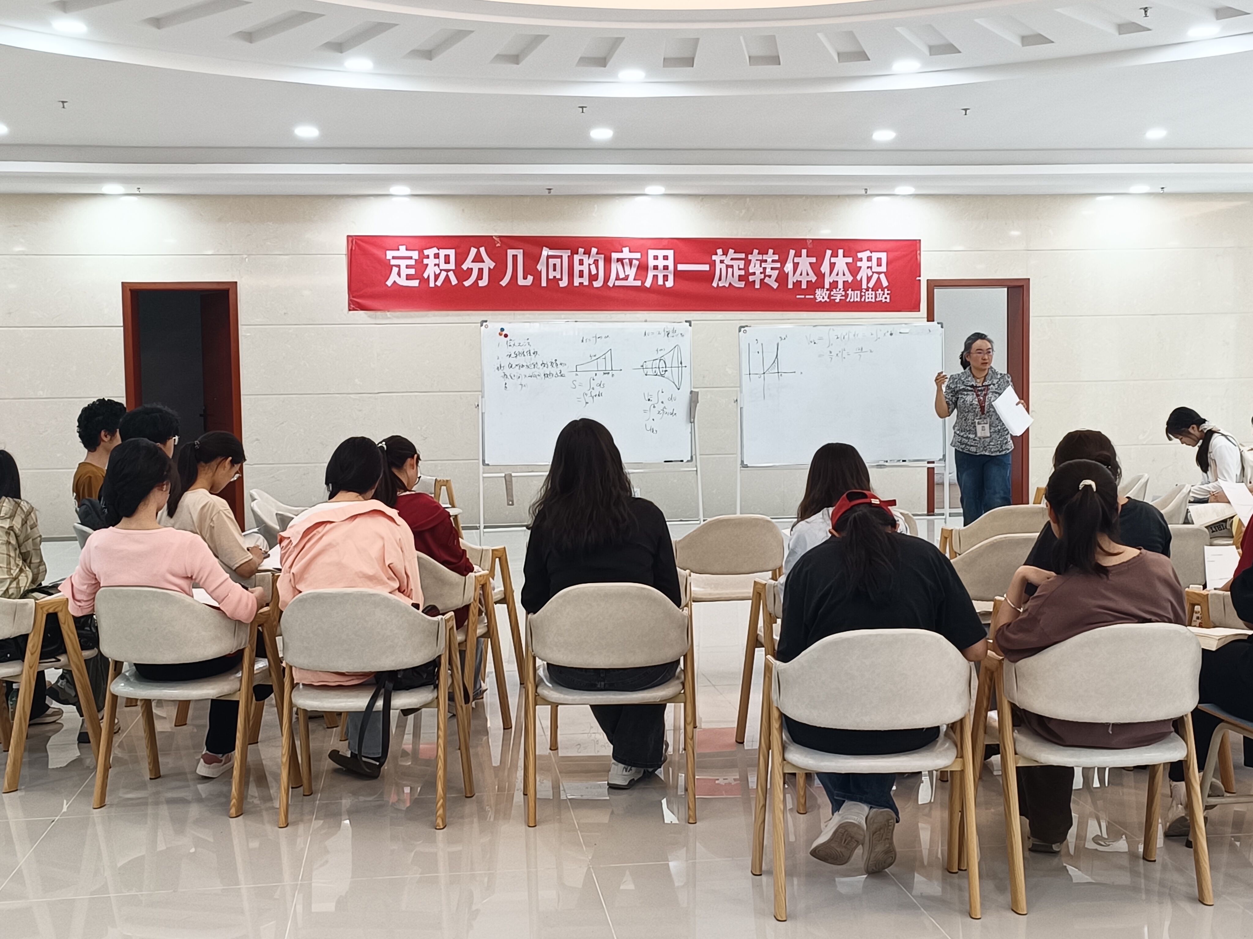 2024年4月18日,由威廉希尔williamhill承办的数学加油站之定积分的几何应用——旋转体体积在员工活动中心举行,本次活动由班晓倩老师主讲,共三十七名员工听课。